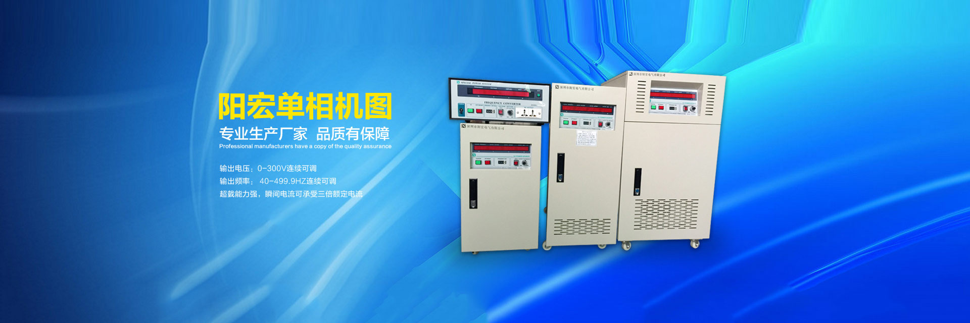 20年變頻電源制造品質(zhì)-陽宏變頻電源為您提供5KVA變頻電源,10KVA變頻電源,20KVA變頻電源,30KVA變頻電源,45KVA變頻電源,60KVA變頻電源,75KVA變頻電源,深圳單相/三相/交流變頻電源等。 模擬式變頻電源,晶體管式變頻電源,可編程式變頻電源,單相大功率變頻電源,三相大功率變頻電源是陽宏電源股份有限公司的核心產(chǎn)品。深圳市陽宏電氣有限公司隸屬臺灣陽宏電源股份有限公司,是一家變頻電源開發(fā)、研制、生產(chǎn)、銷售和服務(wù)的高新技術(shù)企業(yè)。其大陸工廠:深圳市陽宏電氣有限公司,是臺灣陽宏電源股份有限公司在中國大陸一家分公司,地址:深圳市寶安區(qū)觀瀾街道觀瀾高新科技園區(qū)。 臺灣陽宏電源股份有限公司創(chuàng)建于1995年,目前除了臺北公司以外,在中國的廣東深圳設(shè)有分公司,工廠擁有許多的先進設(shè)備。具有年產(chǎn)各種電子儀器電源設(shè)備20000臺以上,工廠有嚴格的生產(chǎn)能力,強大的開發(fā)技術(shù)的管理制度,可以接受新高技術(shù)產(chǎn)品的開發(fā)與研制。